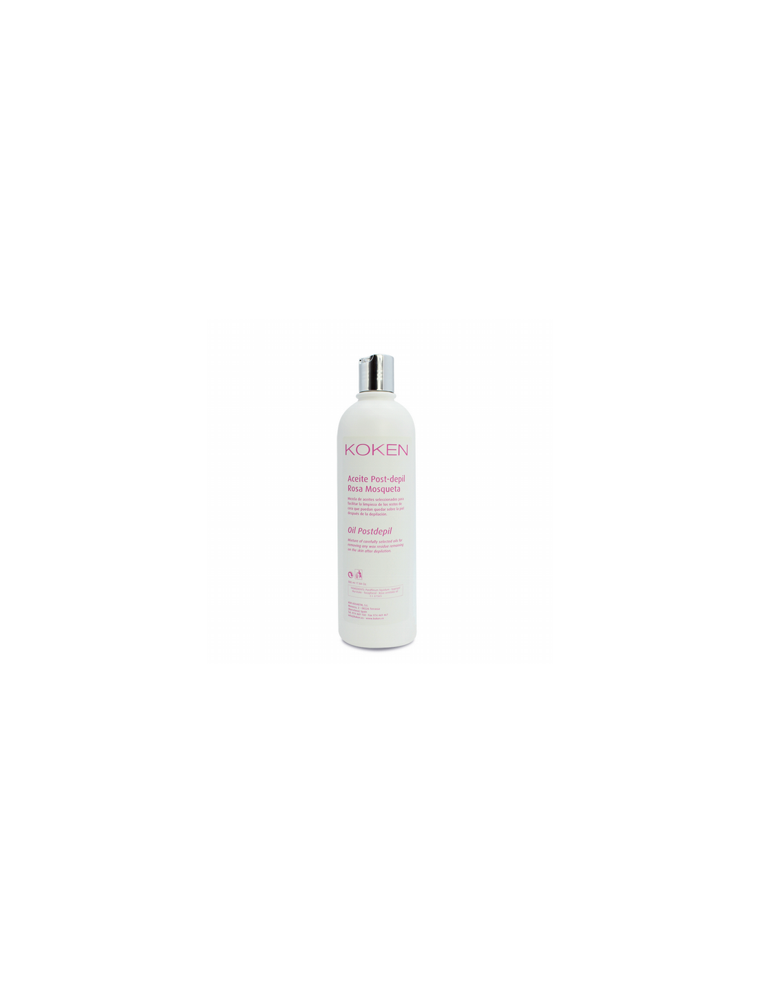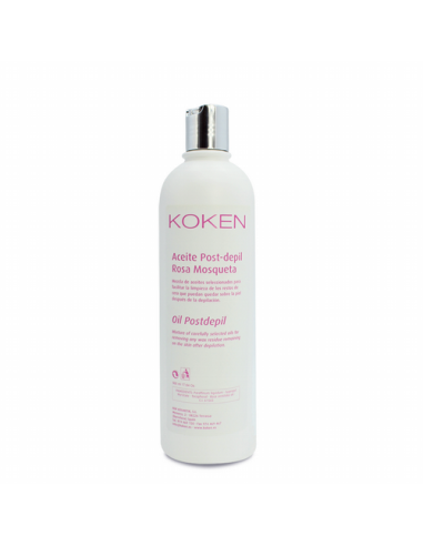 Aceite que limpia la piel tras la depilación. Ayuda a retirar los restos de cera irritando menos, ya que las ceras KOKEN son liposolubles. Además contiene rosa mosqueta en su formulación lo que le confiere al aceite un plus de nutrición, hidratación y cuidado para la piel.