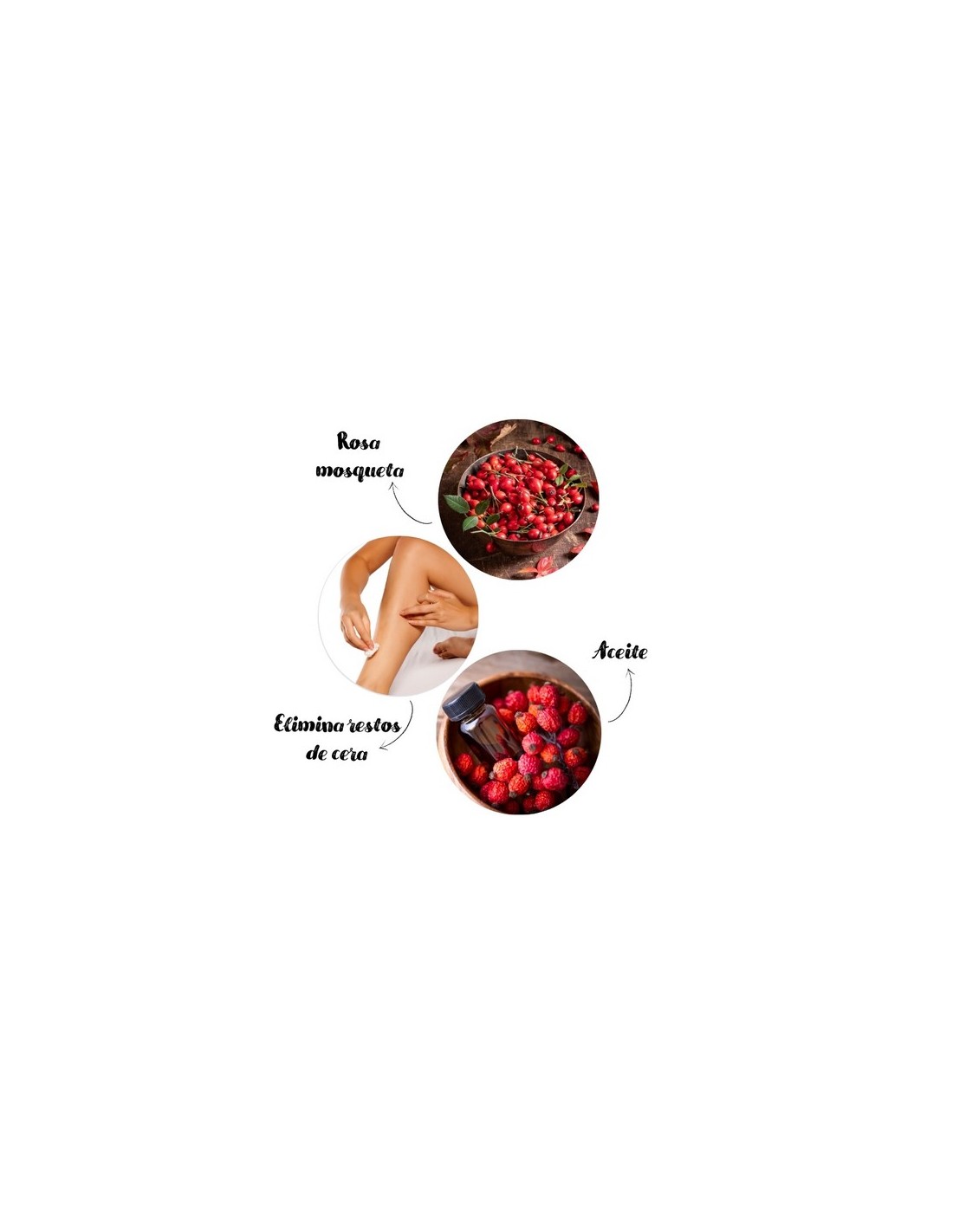 El aceite post-depil de rosa mosqueta ayuda a retirar los restos de cera sin irritar la piel. La rosa mosqueta ayuda a nutrir, hidratar y cuidar la piel.