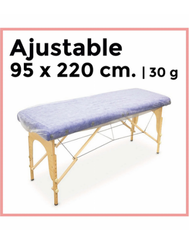 Sábanas ajustables desechables para camilla, tamaño 95x220 cm, fabricadas en tejido no tejido (TNT) de 30 gramos.