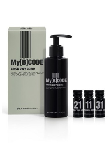 El My[B]CODE Shock Body Serum es un sérum corporal diseñado para abordar de manera personalizada las preocupaciones específicas de cada individuo. Este producto consta de una base de sérum que se enriquece con tres concentrados corporales (códigos), seleccionados según las necesidades y características observadas en cada cliente. Esta personalización permite tratar eficazmente problemas como la flacidez, la celulitis, el exceso de volumen, las estrías y la mala circulación.