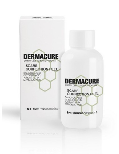 El Dermacure Scars Correction Peel es un peeling químico diseñado para mejorar la apariencia de cicatrices y marcas en la piel, especialmente aquellas resultantes de brotes de acné o rupturas de fibras dérmicas. Su fórmula combina ácidos que inhiben la queratinización del folículo, evitando su obstrucción y contaminación, y promoviendo una piel más uniforme y regenerada.
