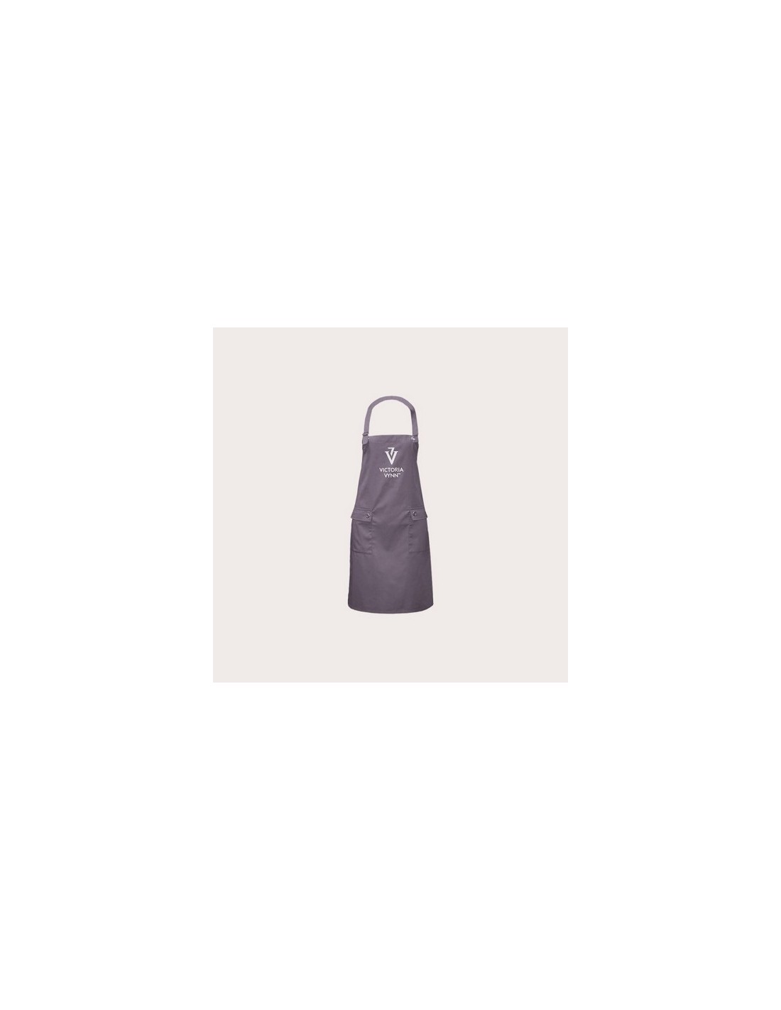 Este delantal gris con el logotipo de Victoria Vynn es ideal para profesionales de la manicura. Cuenta con ajuste de longitud en el cuello y dos prácticos bolsillos frontales. Disponible también en negro, fucsia y violeta.?