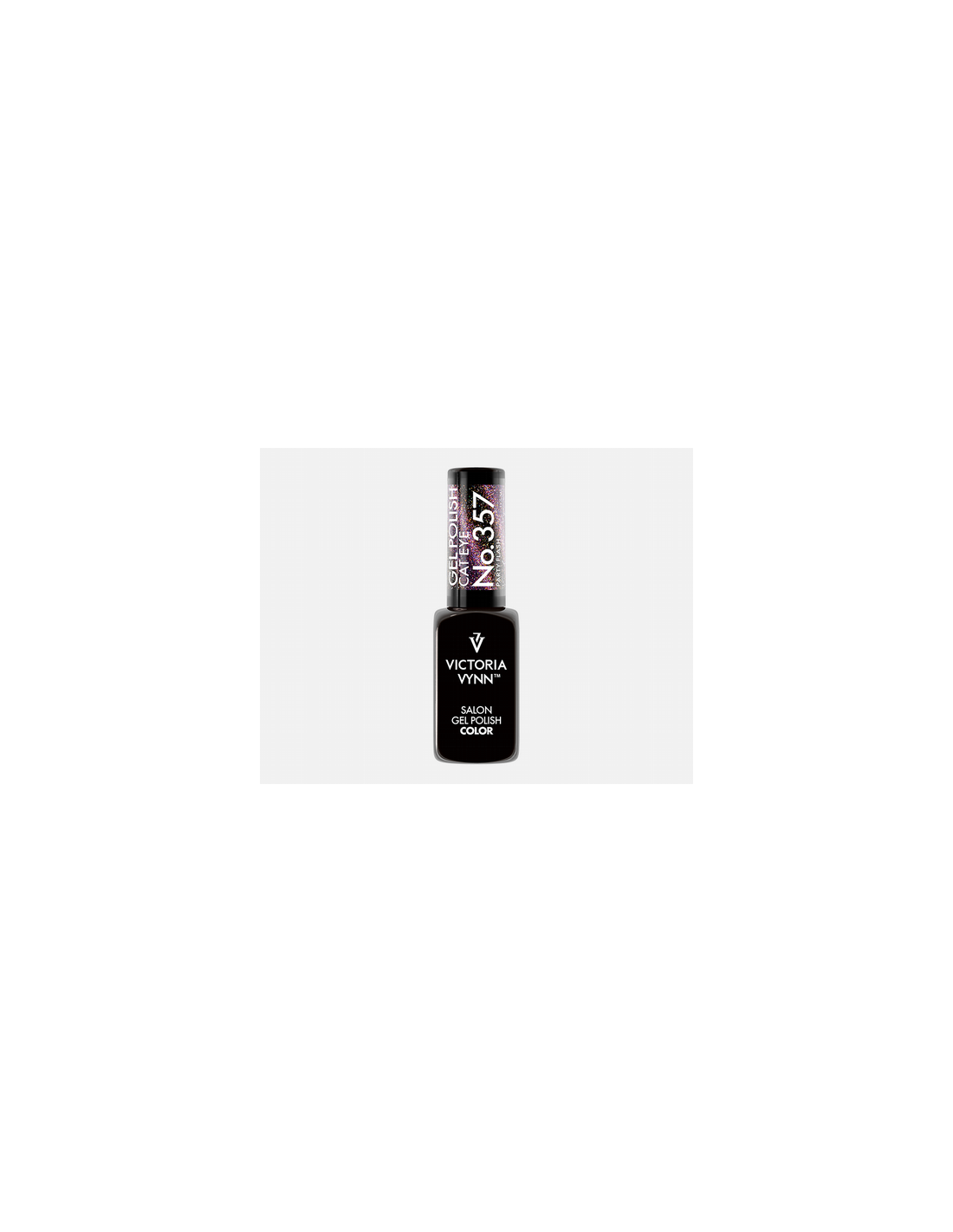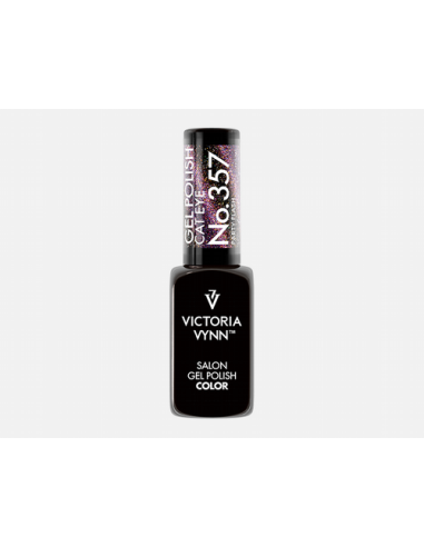 Victoria Vynn Gel Polish 357 Cat Eye Party Flash Un púrpura dinámico con efecto ojo de gato que brilla con matices diversos y festivos. Esmalte híbrido de larga duración, curado en lámparas UV y LED para un acabado profesional y sofisticado. ¡Consíguelo ahora en Valsant Stetics!
