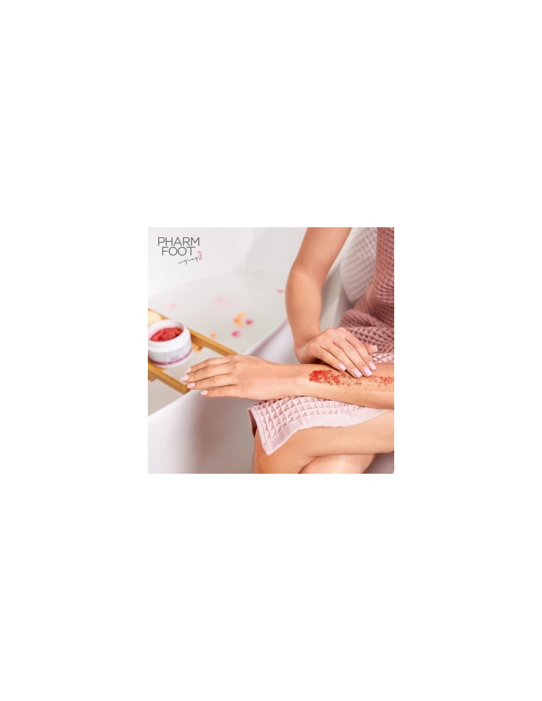 Este exfoliante combina cristales de sal y azúcar con urea y extracto de bayas de goji para una exfoliación mecánica eficaz de la piel seca en pies, manos y cuerpo. Además de eliminar células muertas, mejora la absorción de productos de cuidado posteriores. Contiene ingredientes activos como manteca de karité, partículas de semillas de arándano y cáscaras de nuez, que regeneran e hidratan la piel, dejándola suave y revitalizada.