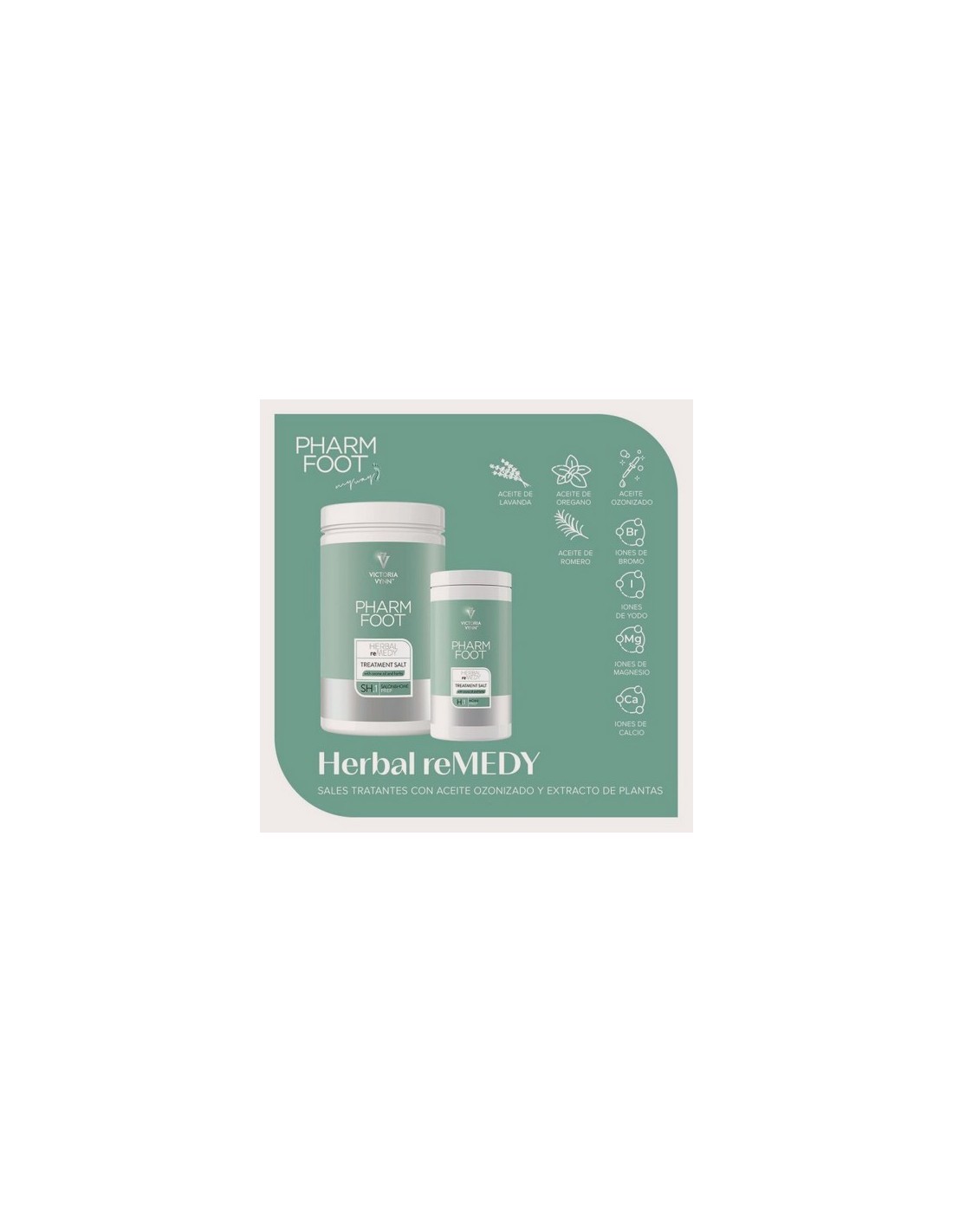 Alivia y revitaliza tus pies con VV Pharm Foot HERBAL reMEDY, unas sales tratantes formuladas con aceite ozonizado y extractos de plantas. Ideales para el cuidado de tiña, verrugas víricas, problemas reumatológicos, hinchazón y pies cansados, también son recomendadas para pieles normales y con tendencia a la hiperhidrosis. Su fórmula con aceites de lavanda, orégano y romero, junto con iones de bromo, yodo, calcio y magnesio, proporciona un tratamiento relajante y purificante. Disponible en 500g (aprox. 12 tratamientos) y 1250g (aprox. 30 tratamientos). ¡Disfruta de un baño reparador para tus pies! Cómpralas ahora en Valsant Stetics.