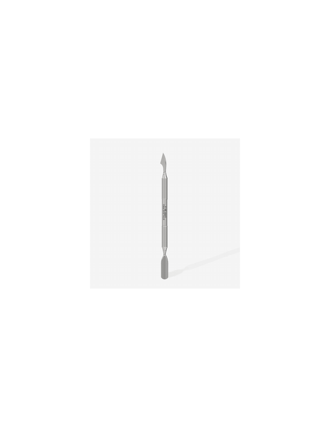 Herramienta profesional de doble extremo diseñada para empujar cutículas con precisión y seguridad. Fabricado en acero inoxidable de alta calidad, ideal para manicura y pedicura.