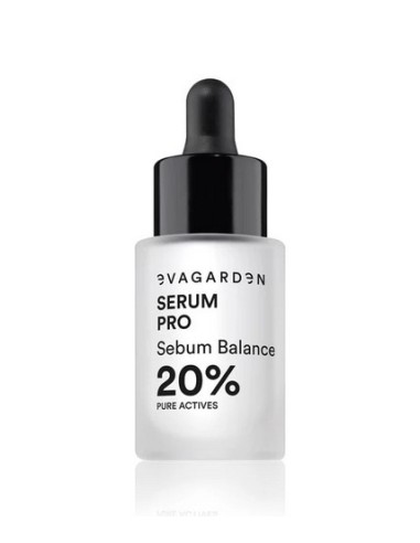 Serum Pro Sebum Balance EVAGARDEN Control de imperfecciones y equilibrio del sebo Sérum facial de tratamiento intensivo para pieles mixtas, grasas y con tendencia acneica. Su fórmula avanzada con 19 principios activos puros en un 20% de concentración regula la producción de sebo, reduce visiblemente las imperfecciones y mantiene la piel joven. Enriquecido con ingredientes como sauce blanco, bakuchiol, aloe vera, aceites orgánicos y extractos botánicos, equilibra y calma la piel. De rápida absorción, ideal también como prebase antes del maquillaje. Piel más lisa, matificada y saludable en cada aplicación. ¡Consíguelo ahora en Valsant Stetics!