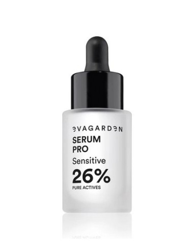 Serum Pro Sensitive EVAGARDEN Calmante intensivo para piel sensible y enrojecida Sérum facial de tratamiento intensivo diseñado para pieles sensibles, enrojecidas y estresadas. Su fórmula avanzada con 20 principios activos puros en una concentración extraordinaria del 26%, mejora la hidratación, fortalece la barrera cutánea y proporciona un confort inmediato. Enriquecido con ceramidas, CBD, pino marítimo, bakuchiol, ácido hialurónico y extractos botánicos, alivia la piel y la protege de agresiones externas. Rápida absorción, ideal también como prebase antes del maquillaje. Piel más calmada, equilibrada y protegida con cada aplicación. ¡Consíguelo ahora en Valsant Stetics!