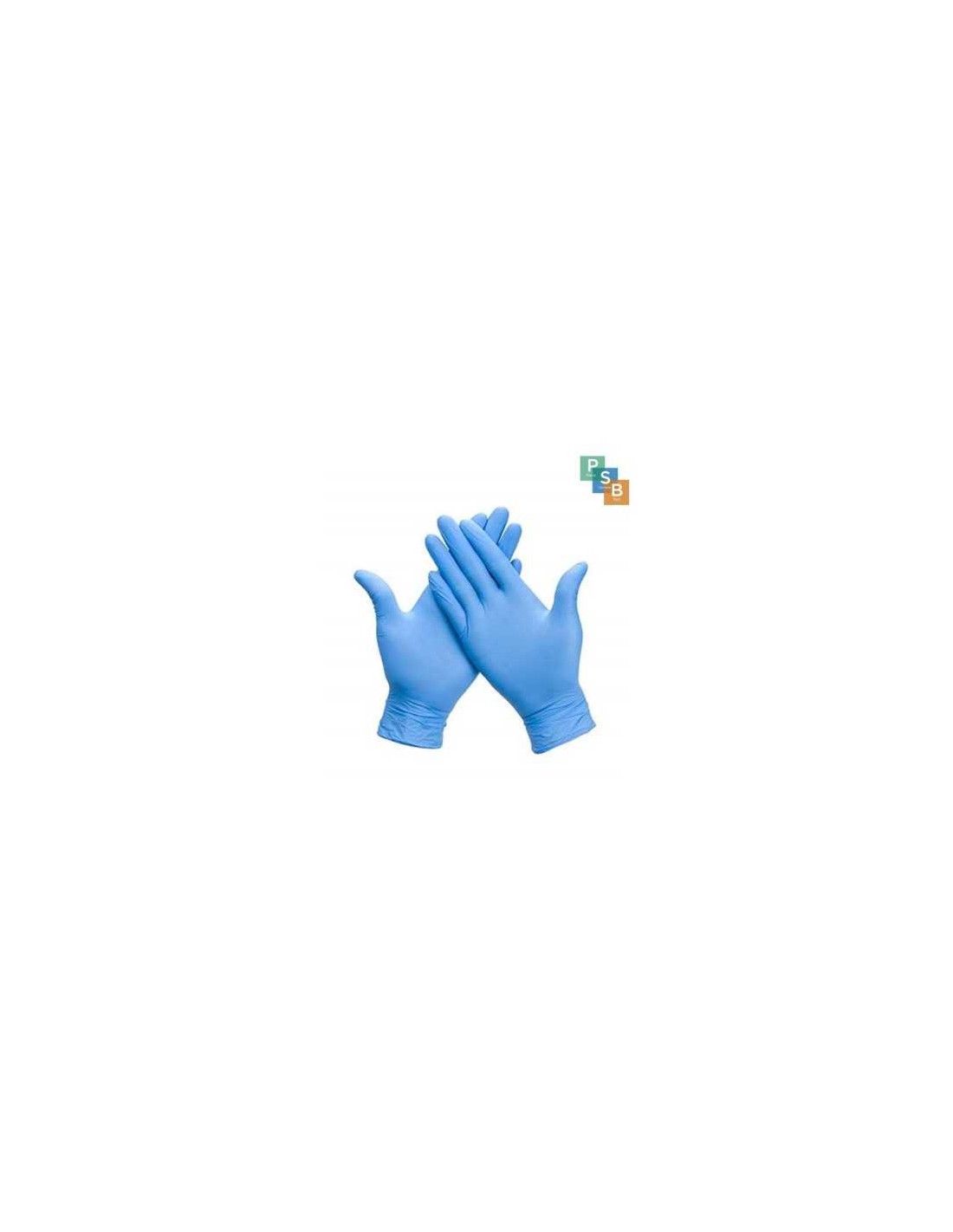 Guantes de nitrilo azul sin polvo, talla M. Caja de 100 unidades. Ideales para uso profesional en sanidad, estética, alimentación y limpieza.