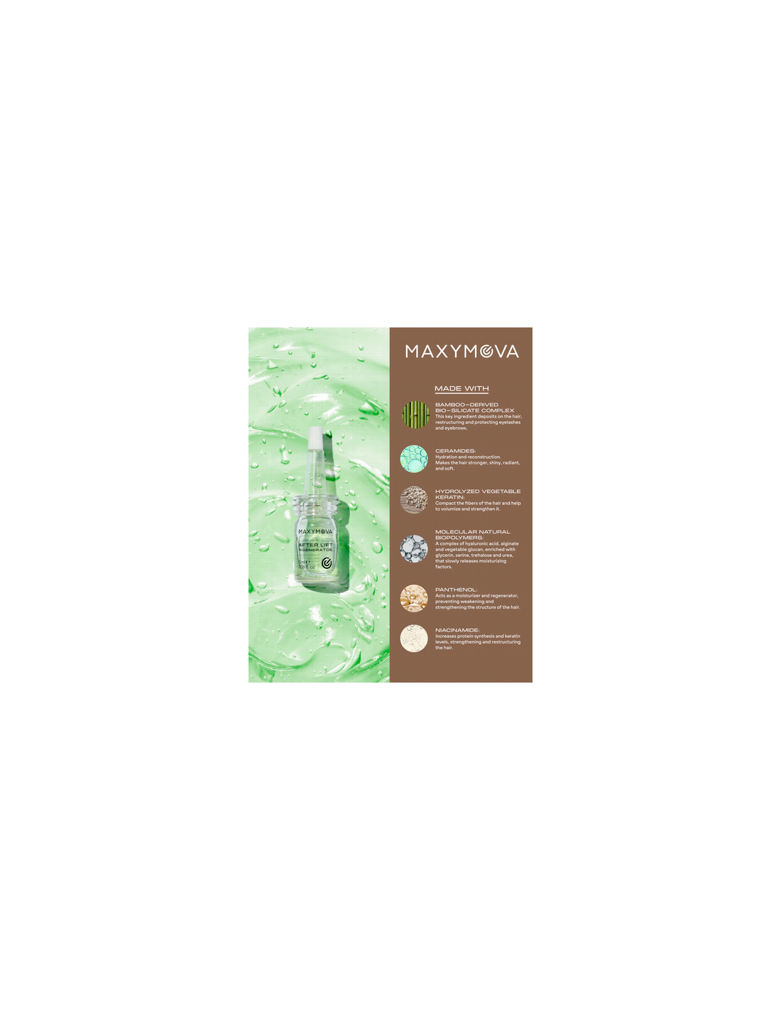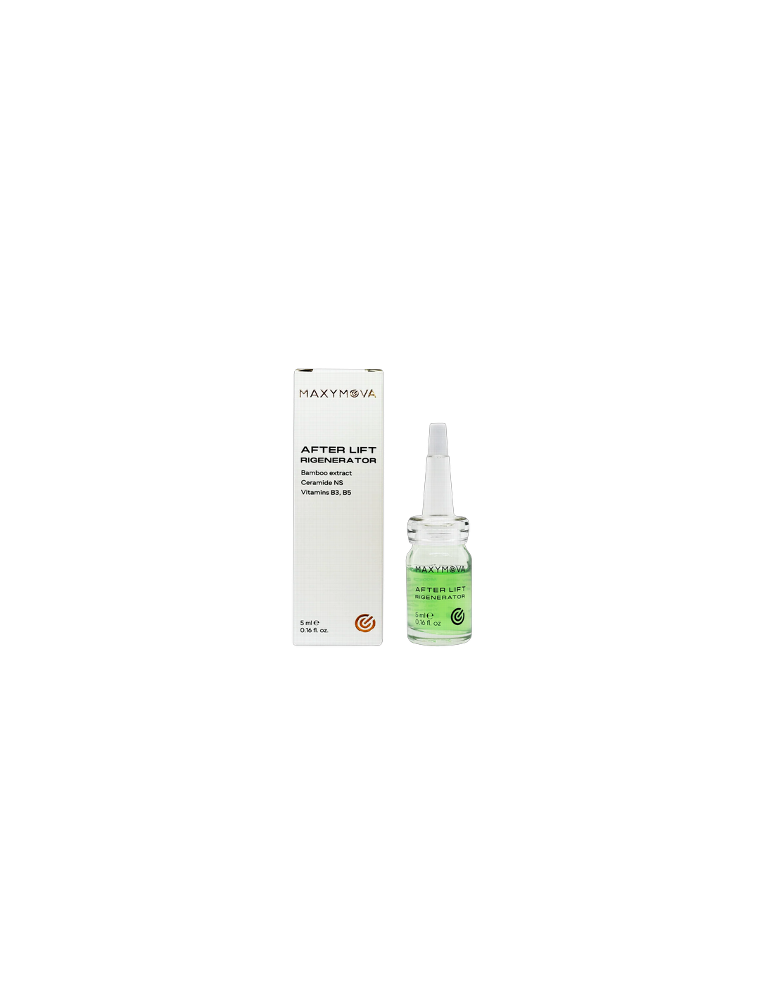 MAXYMOVA AFTER LIFT Regenerator es un sérum concentrado de nueva generación, formulado para sellar, reparar y fortalecer las pestañas después del tratamiento de laminación. Su complejo avanzado de biosilicatos de bambú y activos naturales reestructura la fibra capilar desde el interior, aportando cuerpo, resistencia e hidratación duradera.