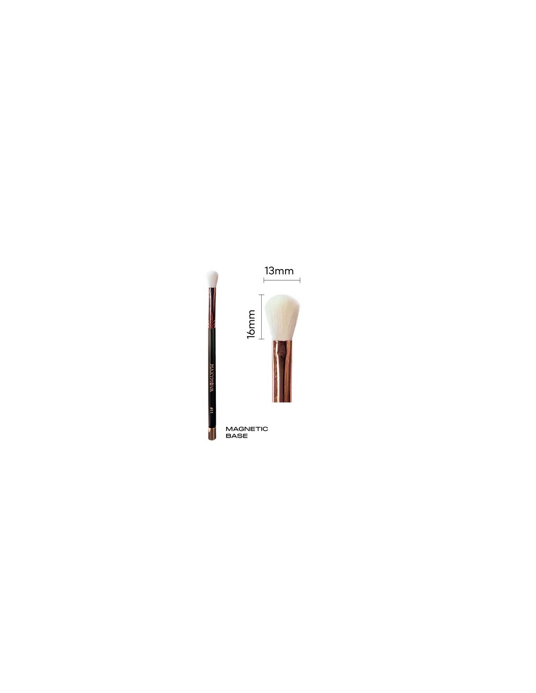 Pincel magnético Nº11 con fibras sintéticas premium, ideal para aplicar y difuminar sombras con precisión.